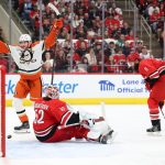 RALEIGH, NORTH CAROLINA - JANUARY 12: Jansen Harkins #38 of the Anaheim Ducks scores his first goal during the first period against Brent Burns #8 and Pyotr Kochetkov #52 of the Carolina Hurricanes at Lenovo Center on January 12, 2025 in Raleigh, North Carolina. | Photo by Katie Januck/Getty Images The Canes come from behind once again but come up short against the … [Read more...] about Ducks 3, Hurricanes 2 – OT