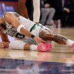 Source: Elsa / Getty The Boston Celtics‘ hopes of winning the NBA championship two years in a row may officially be over. Last night, in the Eastern Conference semifinals against the New York Knicks, the Celtics had built a comfortable double-digit lead, which has become synonymous with the series. However, the majority of those leads dwindled in the final moments, and while … [Read more...] about Jayson Tatum’s Non-Contact Leg Injury Leaves Social Media Fearing The Worst