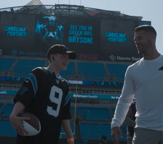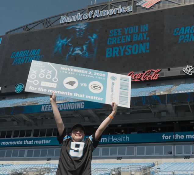 The team surprised Bryson with that, in partnership with Atrium Health, the Panthers are sending him and his family on an all-inclusive trip to Green Bay to watch the Panthers compete against them on November 2.