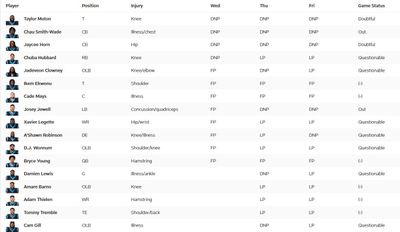Per the Panthers team website, the following players are on the injury report as of publication: