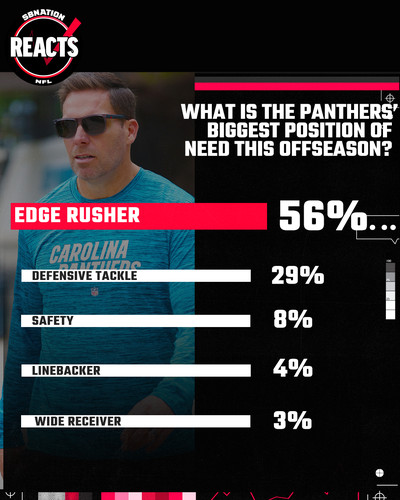 56% of y’all think that this team needs the most help at edge rusher. That makes a ton of sense for anybody who watched any of the Carolina Panthers‘ games from last year. The defense struggled to set the edge in the running game and to rush the passer. It was a lethal combination.