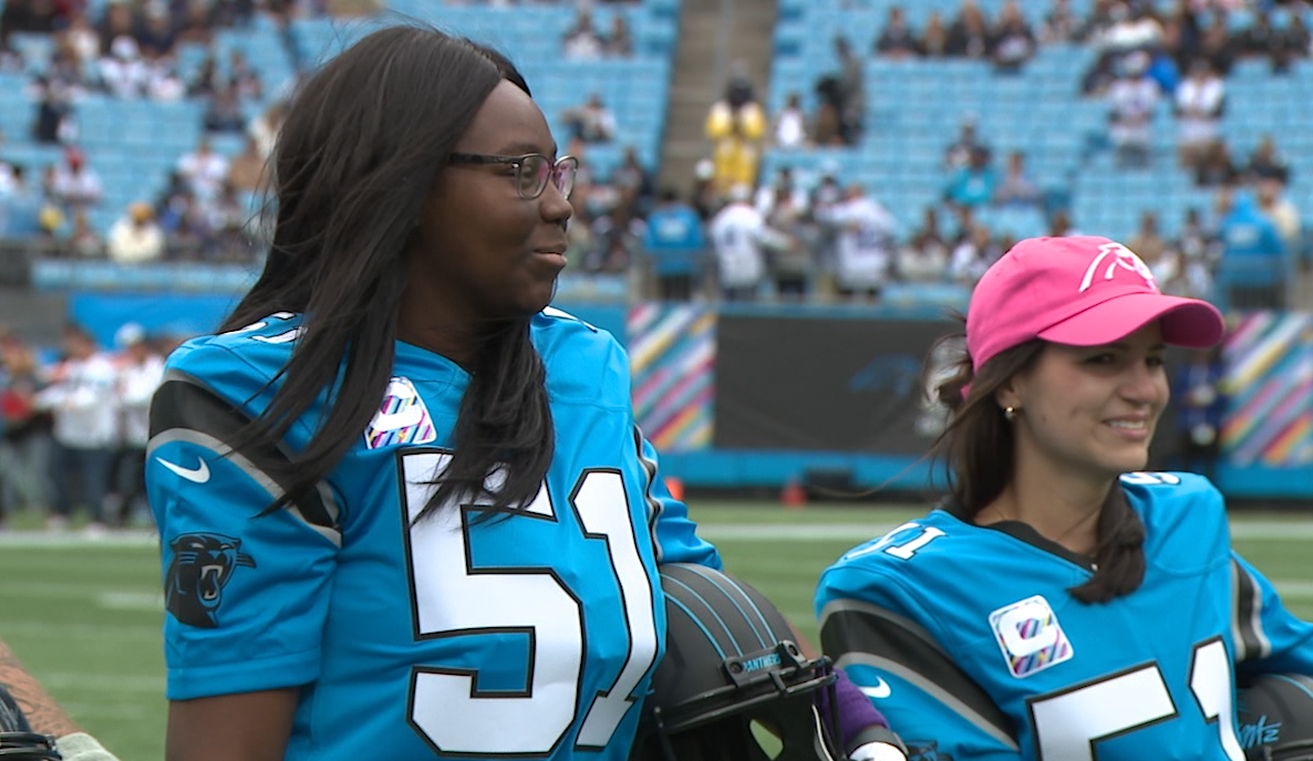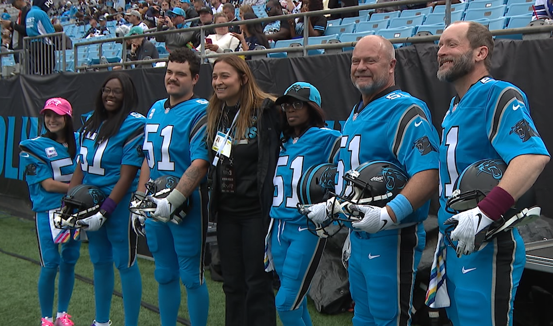 And so there she was: a 52-year-old woman, in full football gear. surrounded by some new friends and forever teammates. Standing together side by side, taking in the cheers at Bank of America Stadium as honorary captains just before the Panthers took on the Cowboys.